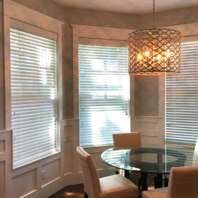Wood blinds are also an option with white trim.